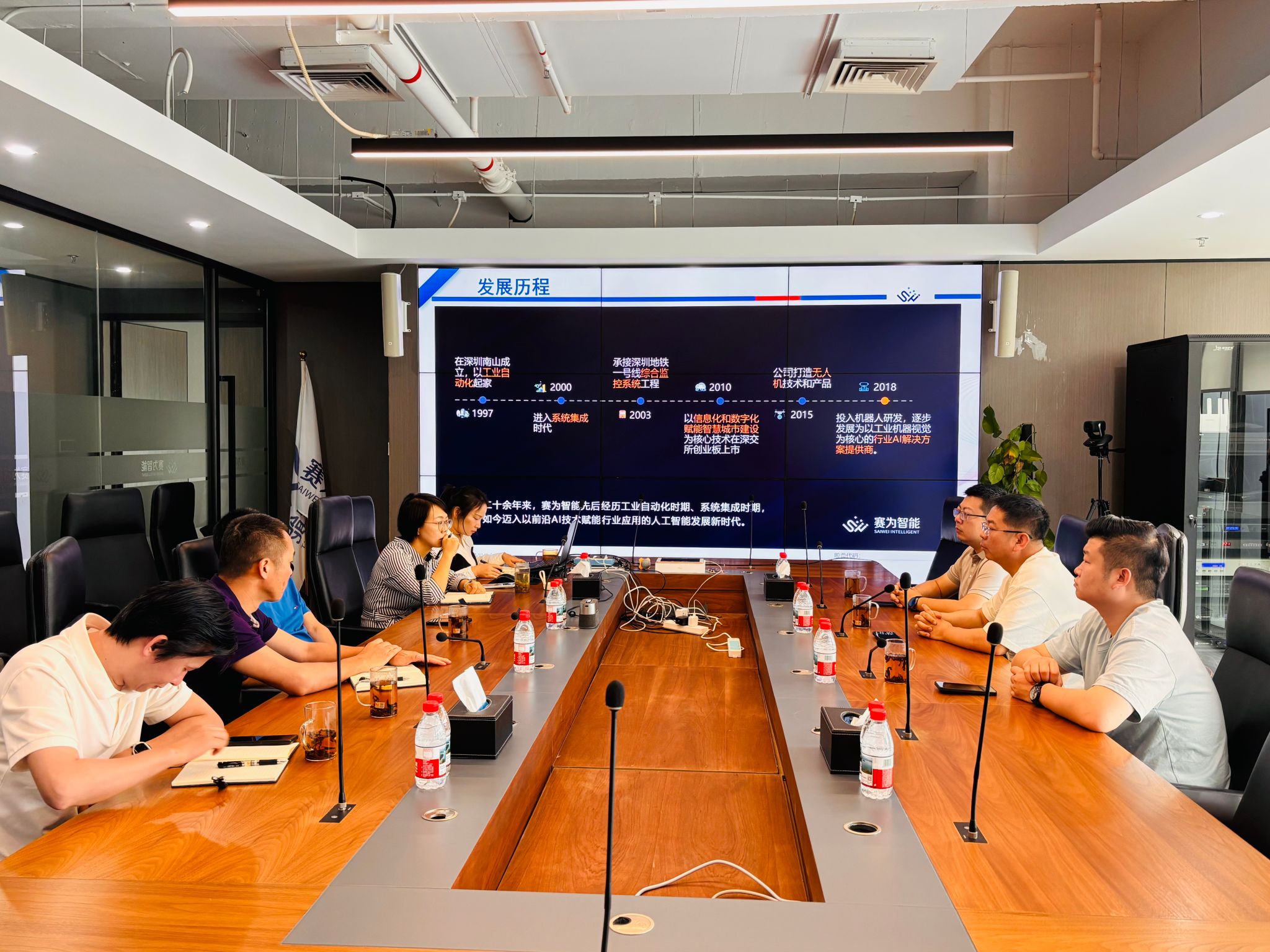 【本网讯】4月15日上午,学校双流新型产业学院管委会副主任王强带队,赴深圳市赛为智能股份有限公司开展交流座谈,与企业核心管理层面对面交流,推动科研成果落地、人才供需适配,实现优势互补、双向赋能。赛为智能实控人周勇携核心管理团队热情接待了王强一行,赛为智能董事、副总经理、轨道交通事业部总经理蒋春华,董事、研发中心总监汪玉冰,总经理助理、轨道交通华南事业部总经理贾平,总经理助理、人工智能事业部总经理胡海兰全程参与座谈,双方围绕技术研发、人才培养、成果转化等核心议题,展开深入的交流探讨。